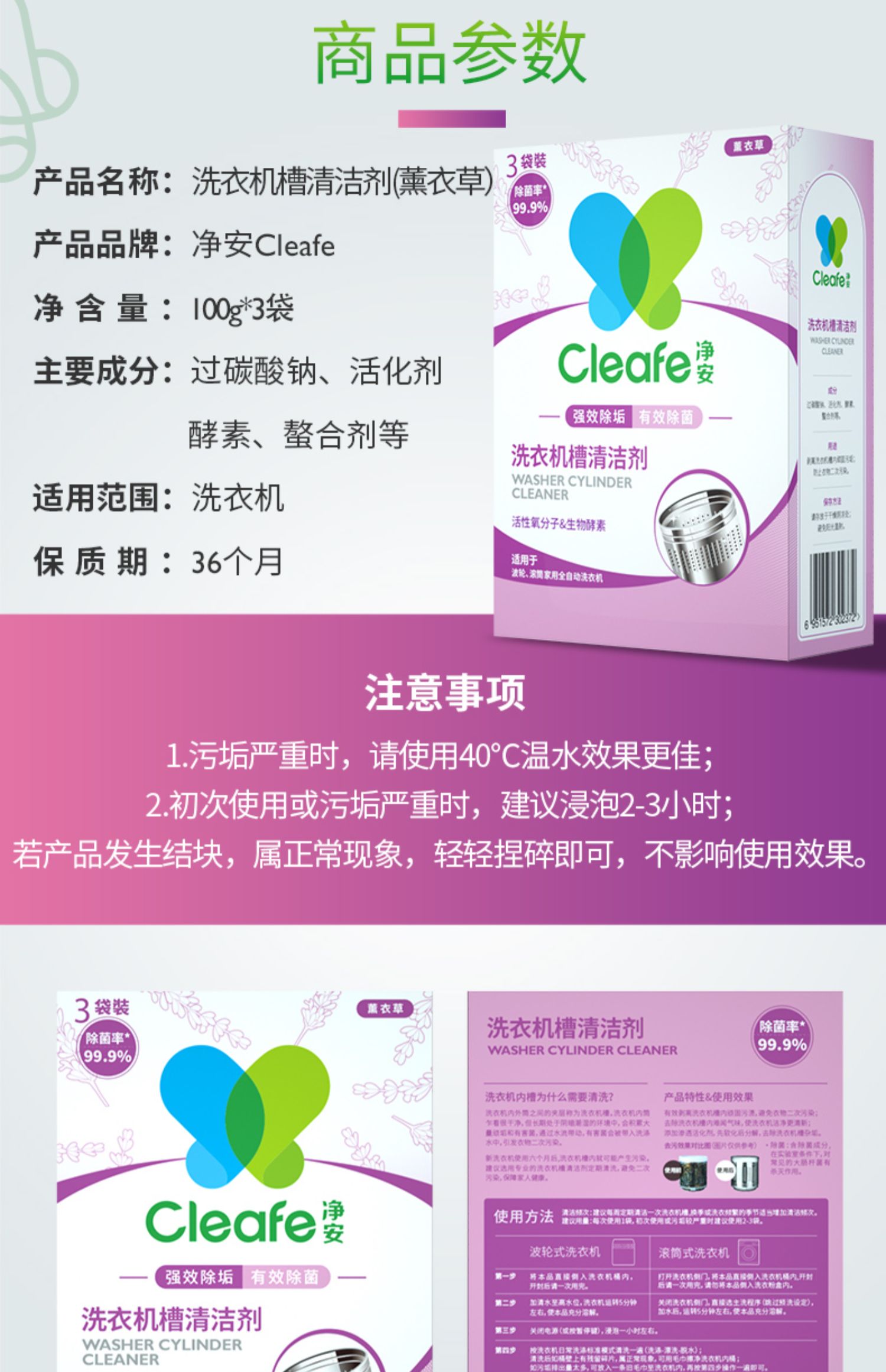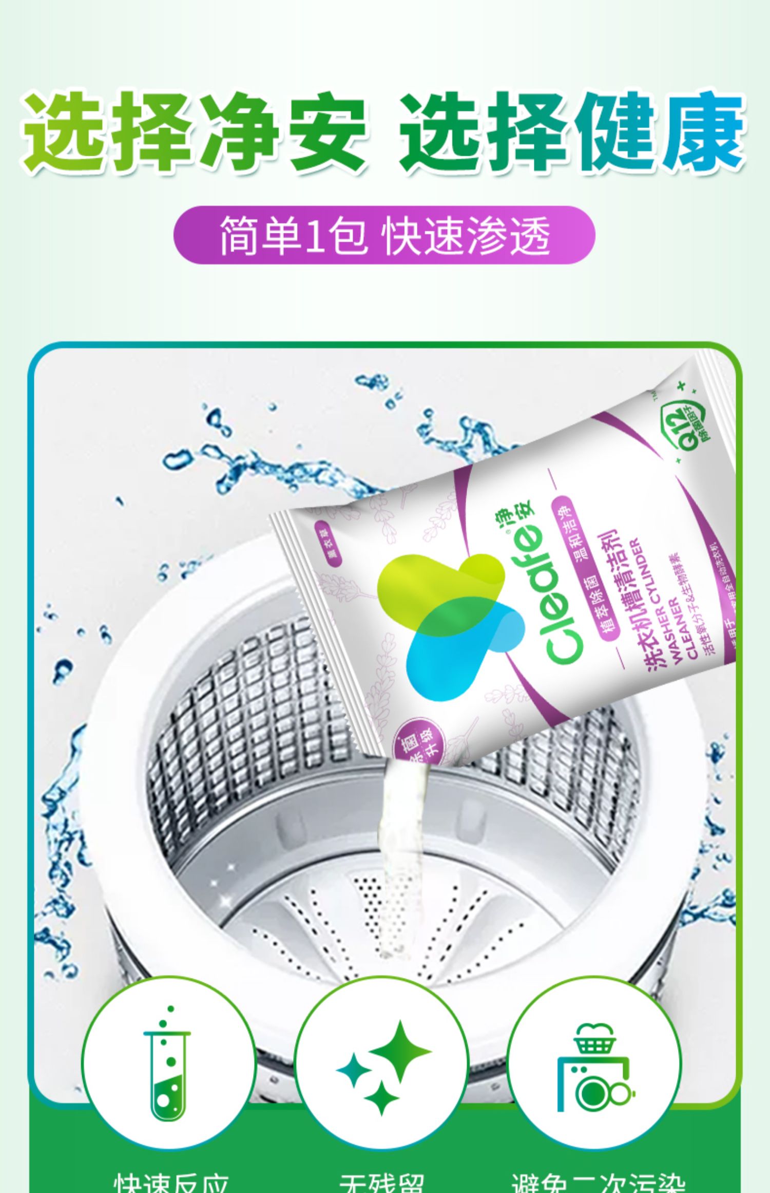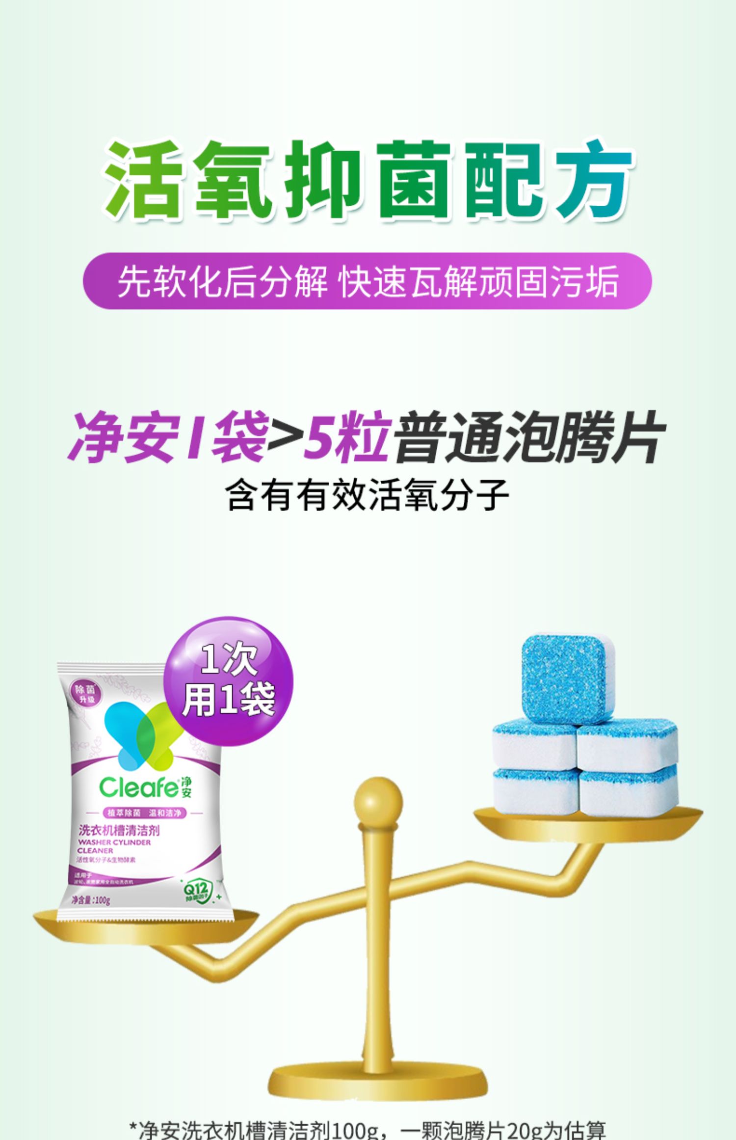 净安洗衣机槽清洗剂,温和配方,清洁除菌,含有效活氧分子,1袋相当于5粒普通泡腾片,快速渗透,瓦解污垢,防止细菌滋生,让洗衣机更耐用!【退货运费险】
