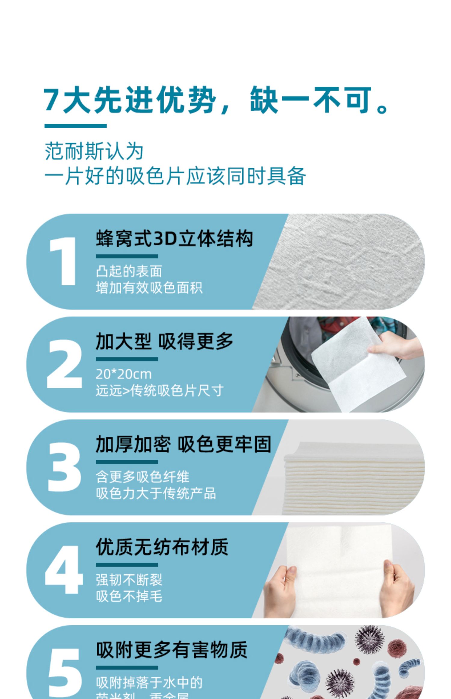 超大、加厚、加密细纤维3D结构,吸色更强大,有效快速吸色,混洗无忧,专利品质保证,节时节电,处理方便,可有效吸除荧光增白剂,让穿衣更舒服更健康。低价促销,值得抢购。【赠运费险】