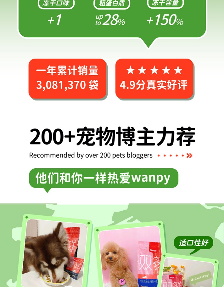 【凑单26.5】【送顽皮火腿肠400g】美味升级,添加鸡肉鸭肉两种冻干