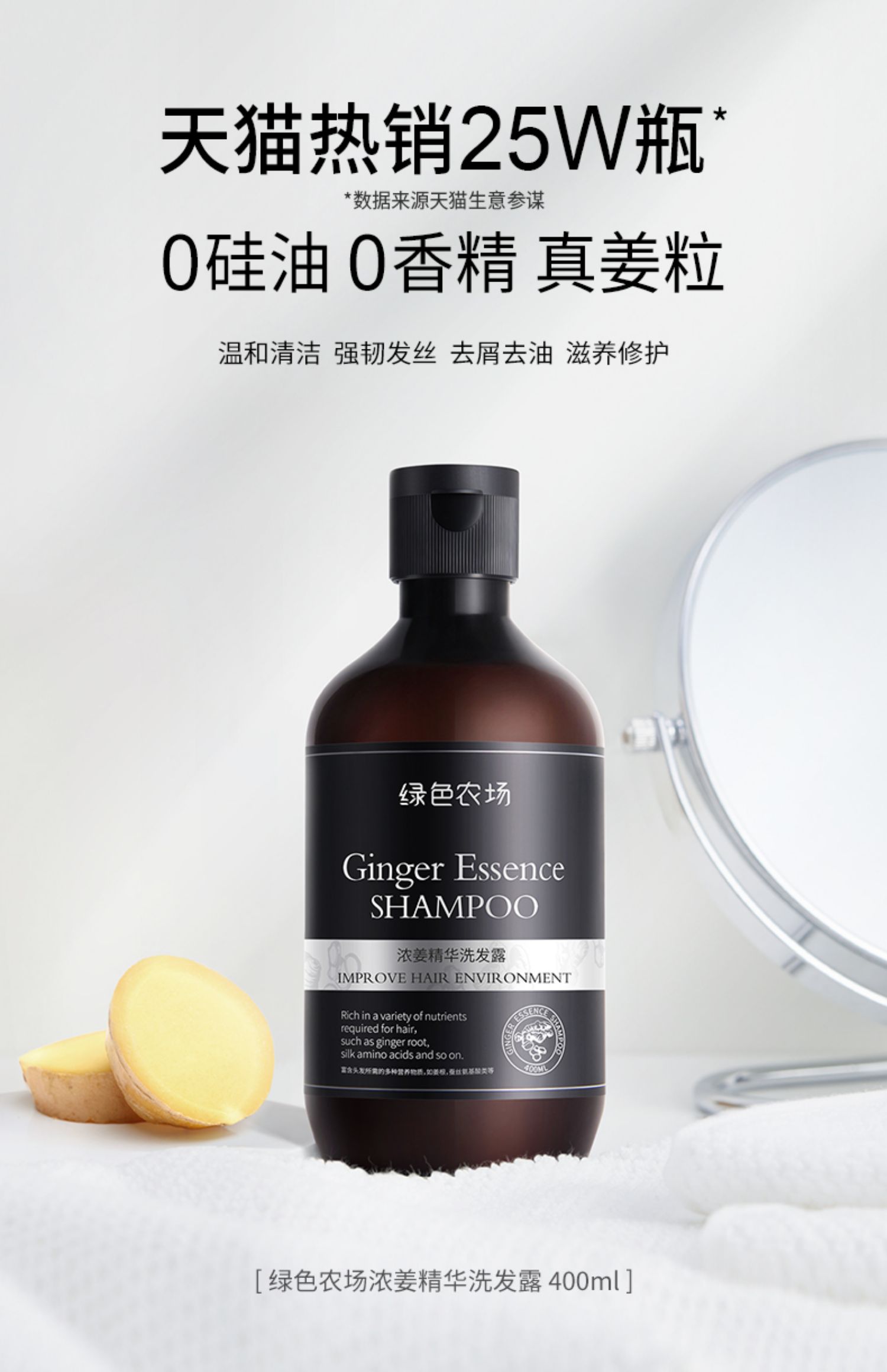 绿色农场生姜精华精华,做到深度控油,强根育发滋养头皮,清爽控油,清爽无硅油,生姜洗发水,男女通用,健康品牌,值得信赖【赠运费险】