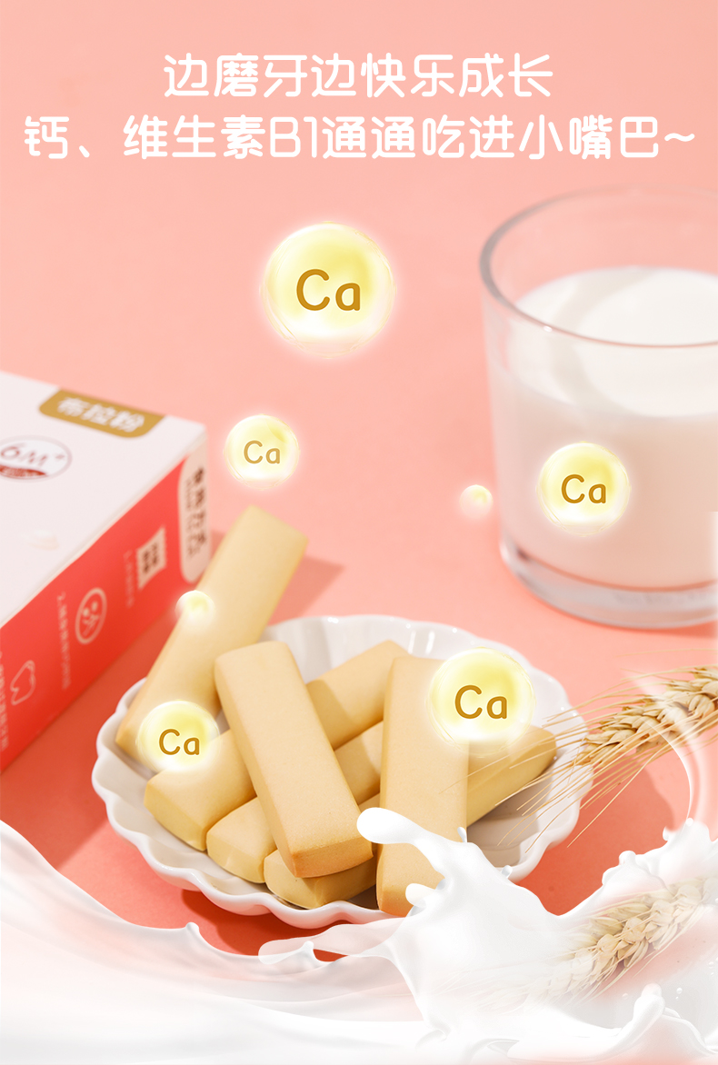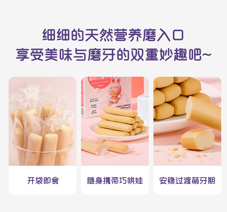 婴幼儿标准!温和磨牙不伤牙龈,独立分装,无添加,宝宝磨牙优选,有效补充钙和维生素B1,好吃好玩,探索感知每一步!