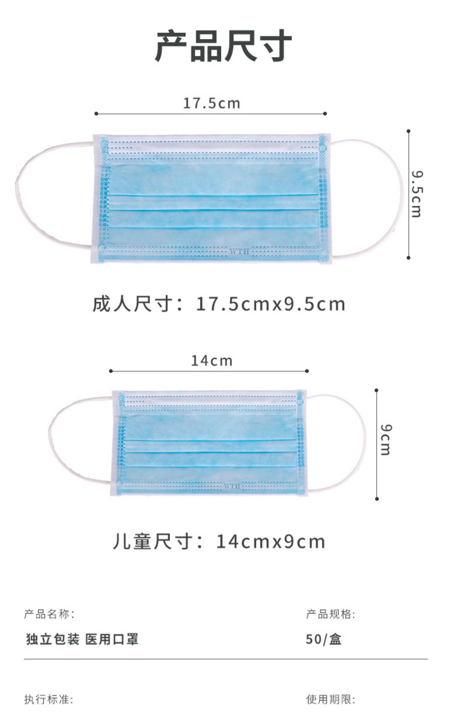 一次性【独立装】成人儿童医用口罩50片,三层加厚款防护,更严苛更安心。合格证书齐备,出口白名单,防伪钢印!假期出行必囤,更安心