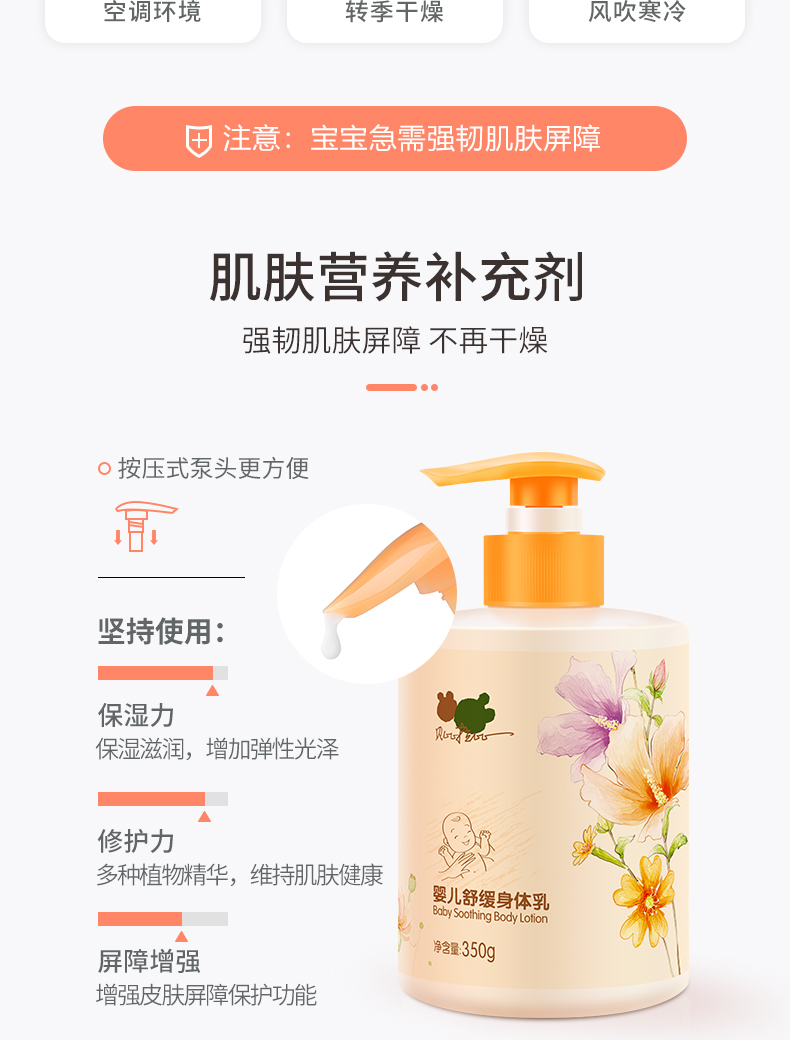 贝比拉比,宝宝儿童润肤霜,植物精华科学匹配,深层滋养高渗透,软化角质打通毛孔。有抗炎解热,镇静,肌肤的作用。抑菌止痒,保湿滋润,舒缓、修复肌肤。