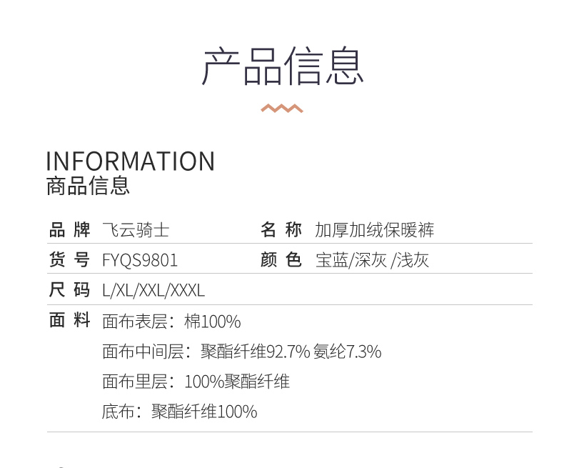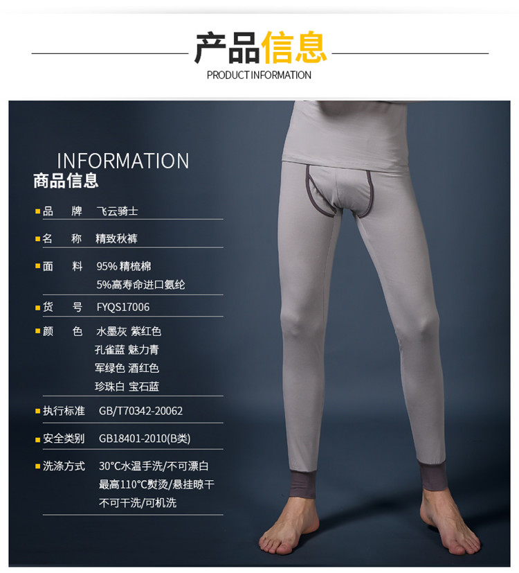 飞云骑士男士超薄秋裤纯棉打底裤家居保暖裤