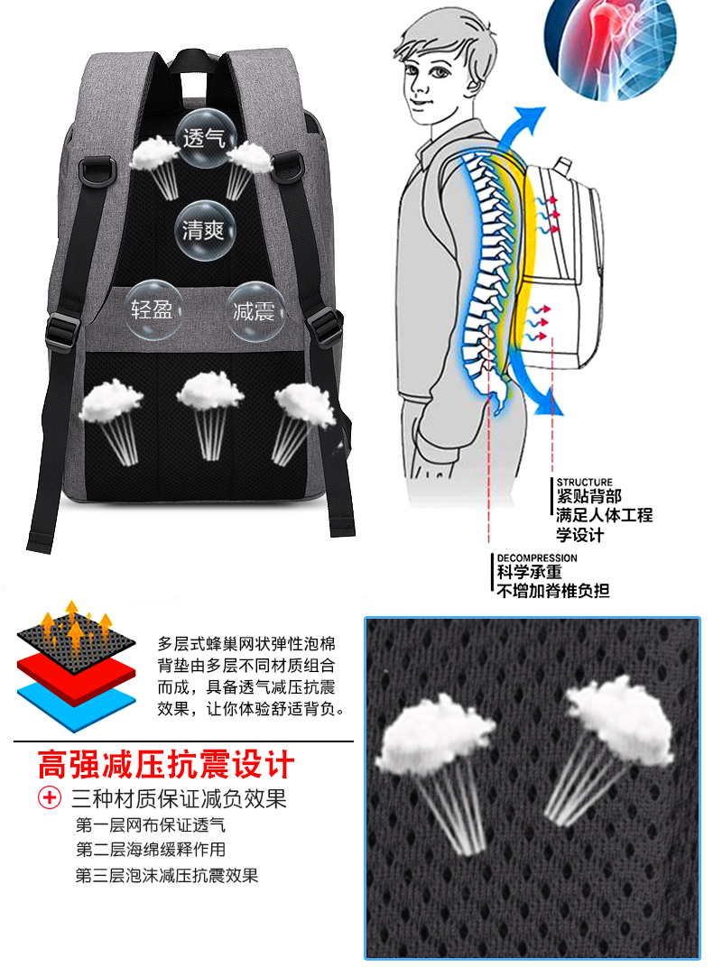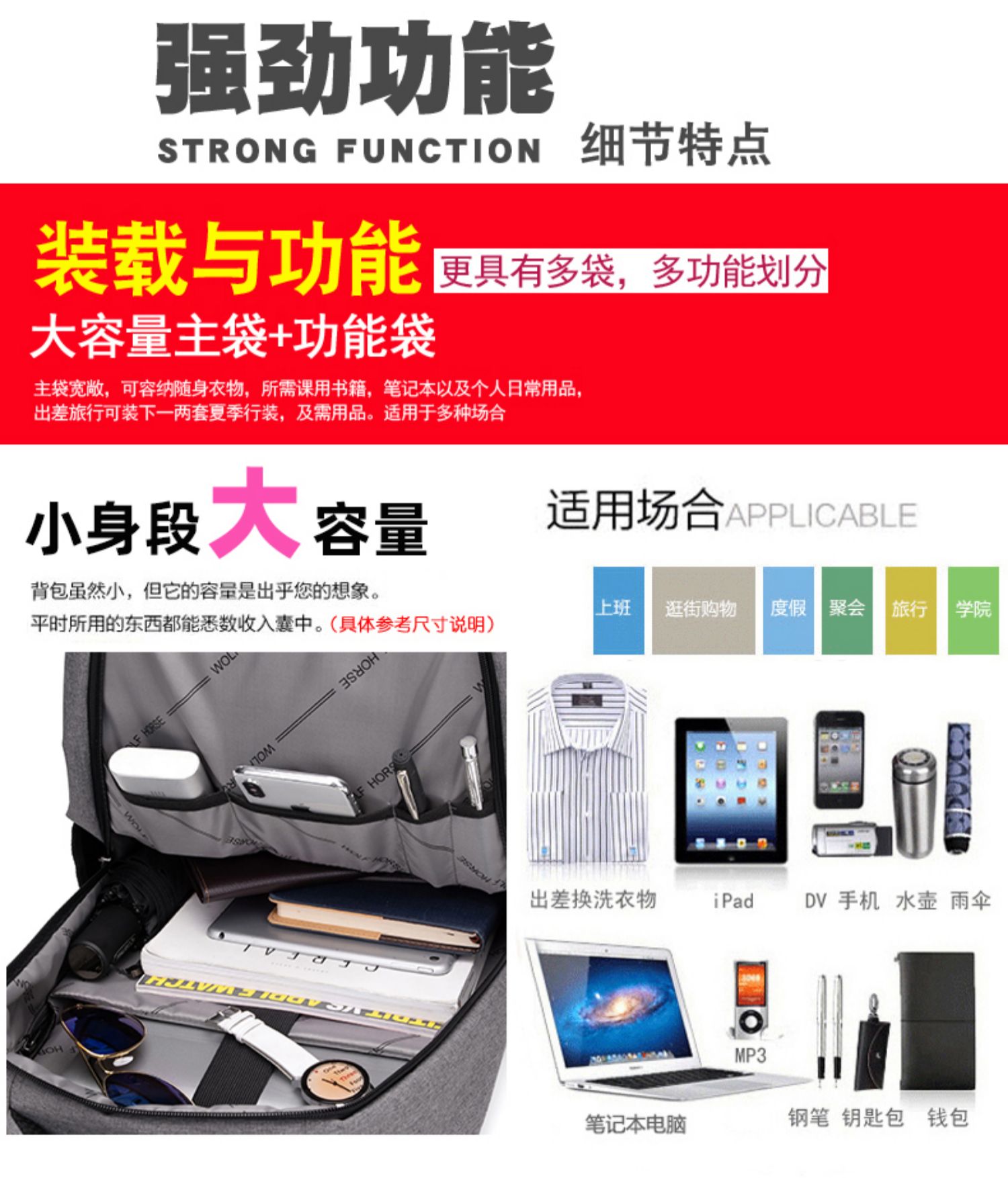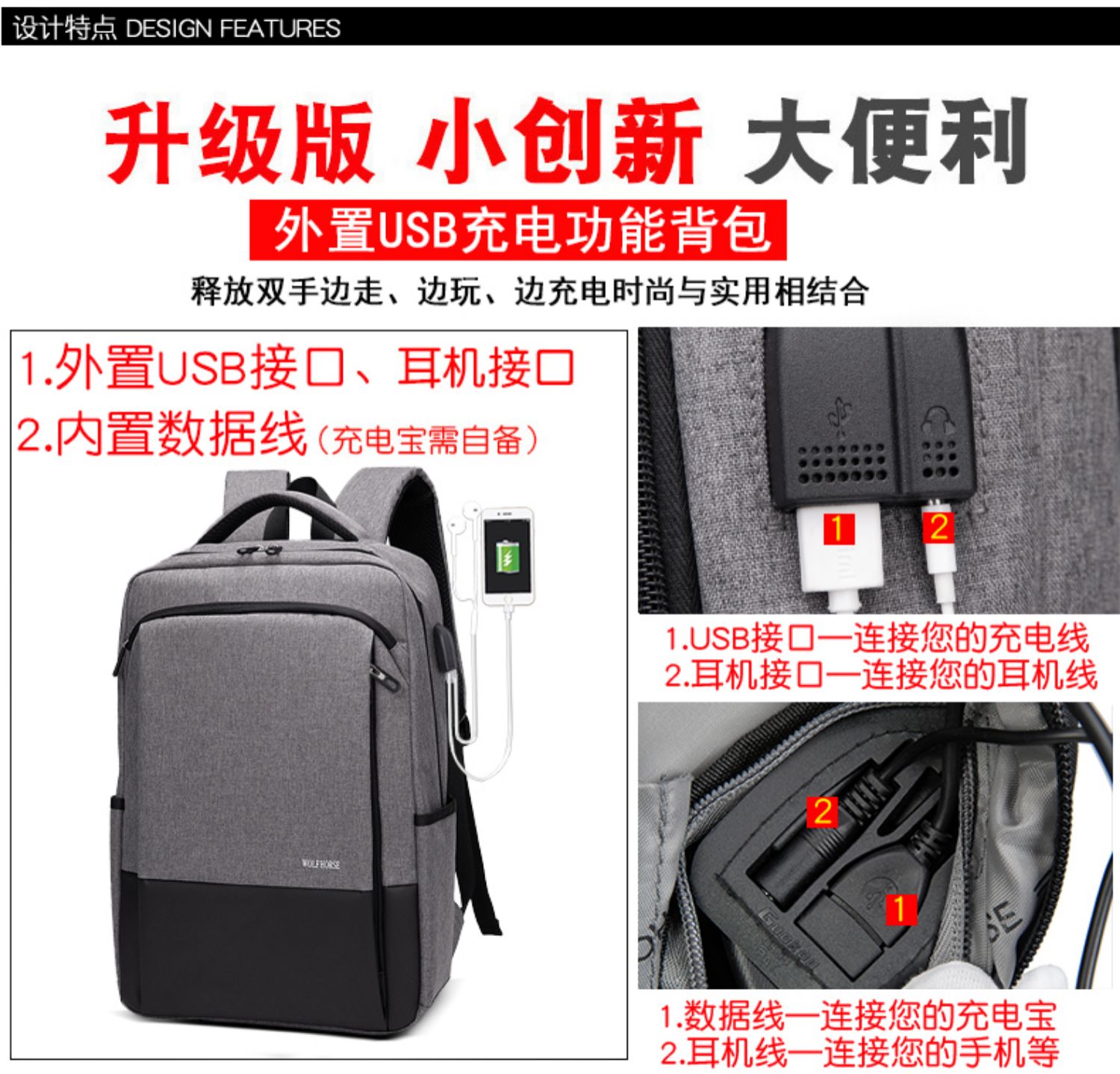 【首单+签到】多功能大容量双肩包背包,精选抗撕裂防泼水面料!更有外置USB充电线接口+耳机孔,内置数据线。释放双手边走、边玩、边充电,时尚与实用相结合~男女都可背哦!【退货运费险】