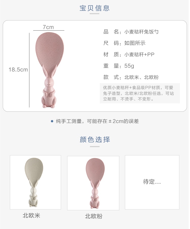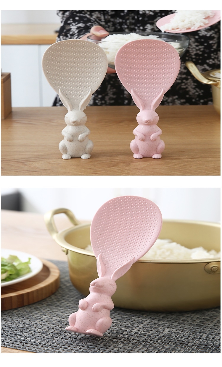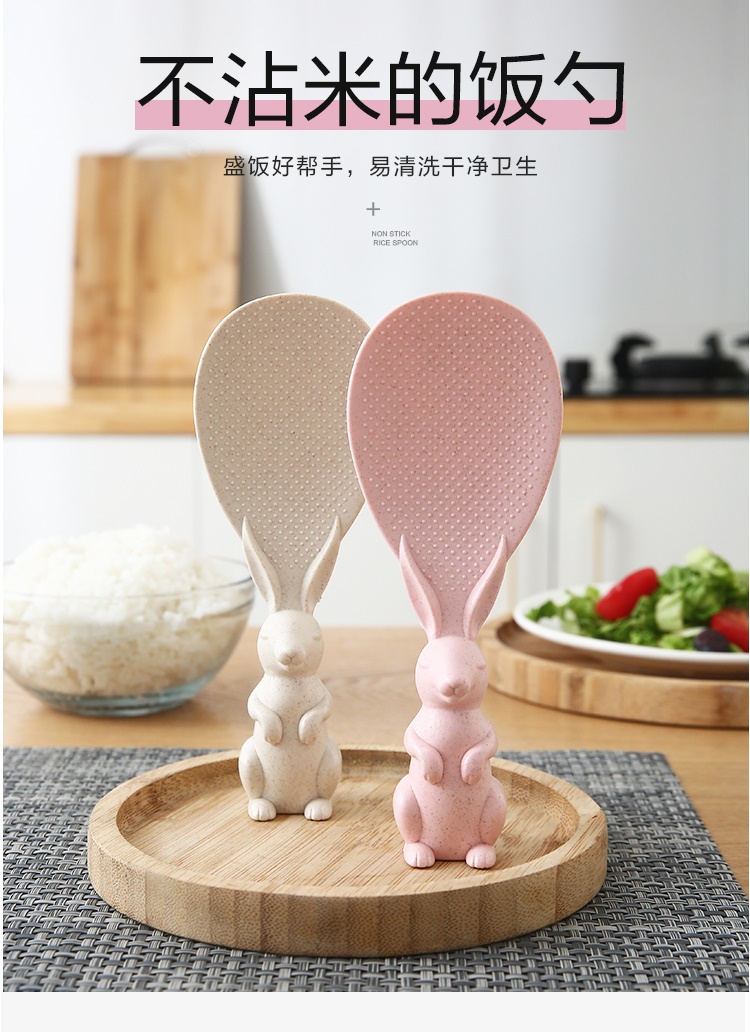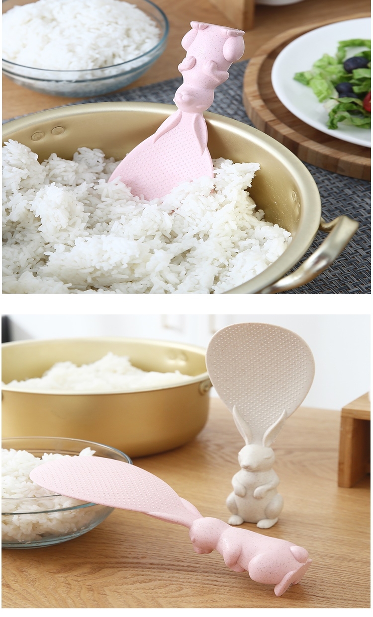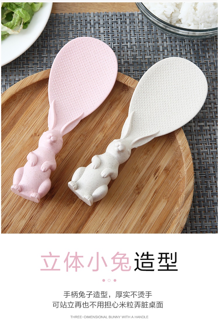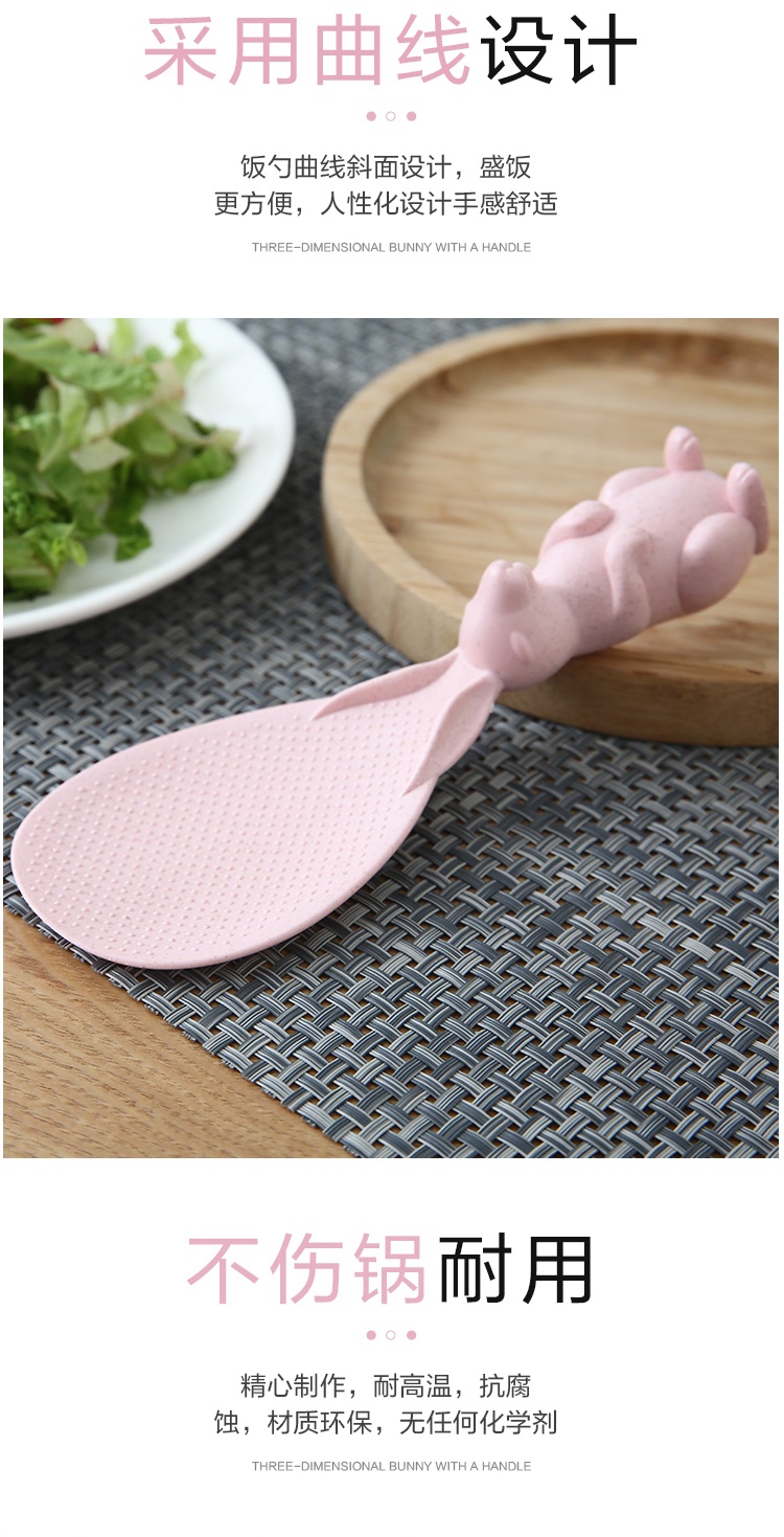盛饭的好帮手,易清洗干净卫生不沾米,手柄兔子造型,厚实不烫手可站立再也不用担心米粒弄脏桌面。耐高温,抗腐蚀,材质环保,无任何化学剂!