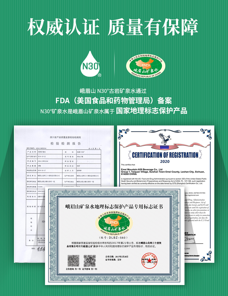 峨眉山N30°古岩天然饮用矿泉水350ml*24瓶,弱碱性饮用水,每一滴都历经岩层的溶滤、循环、矿化。峨眉山天然矿泉水富含偏硅酸、锶、钙、钾、钠、镁等十多种有益于人体的矿物质及微量元素,口感柔和,清冽甘甜~~